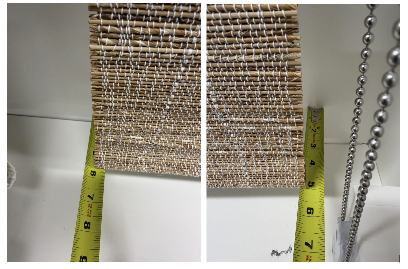 Twisting is typically caused by uneven thread tension during the weaving process, it can also happen over time from the natural stretch of the threads and natural materials. Twisting is most common on narrow and long shades, but can happen to any size shade.
