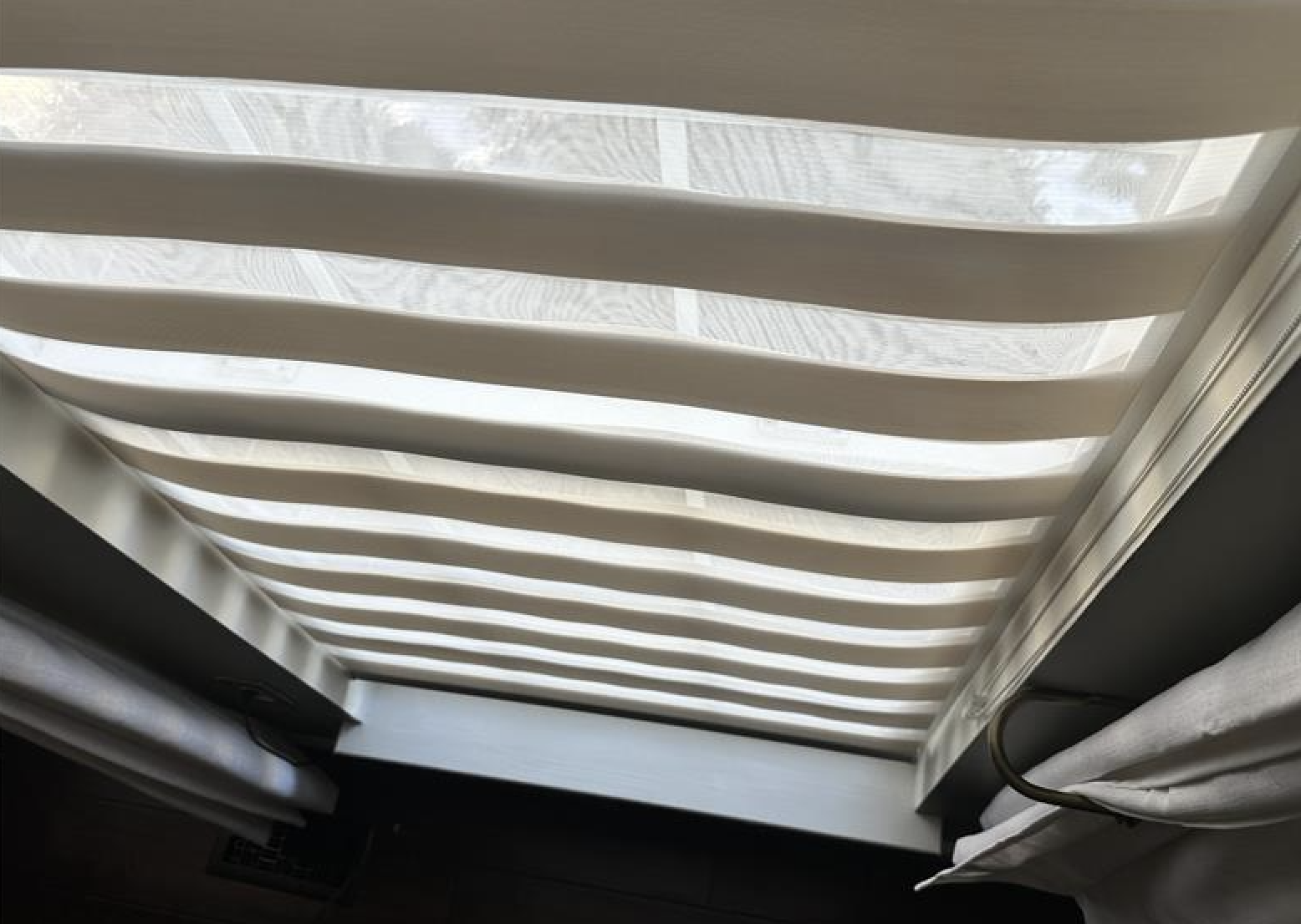 Dry weather and heavy furnace use can really affect Dual Sheer Shade fabric, causing static that makes the fabric behave strangely, even if it was perfectly fine for a long time. Ripples, curling, shadows, etc can form when static affects the shade fabric.