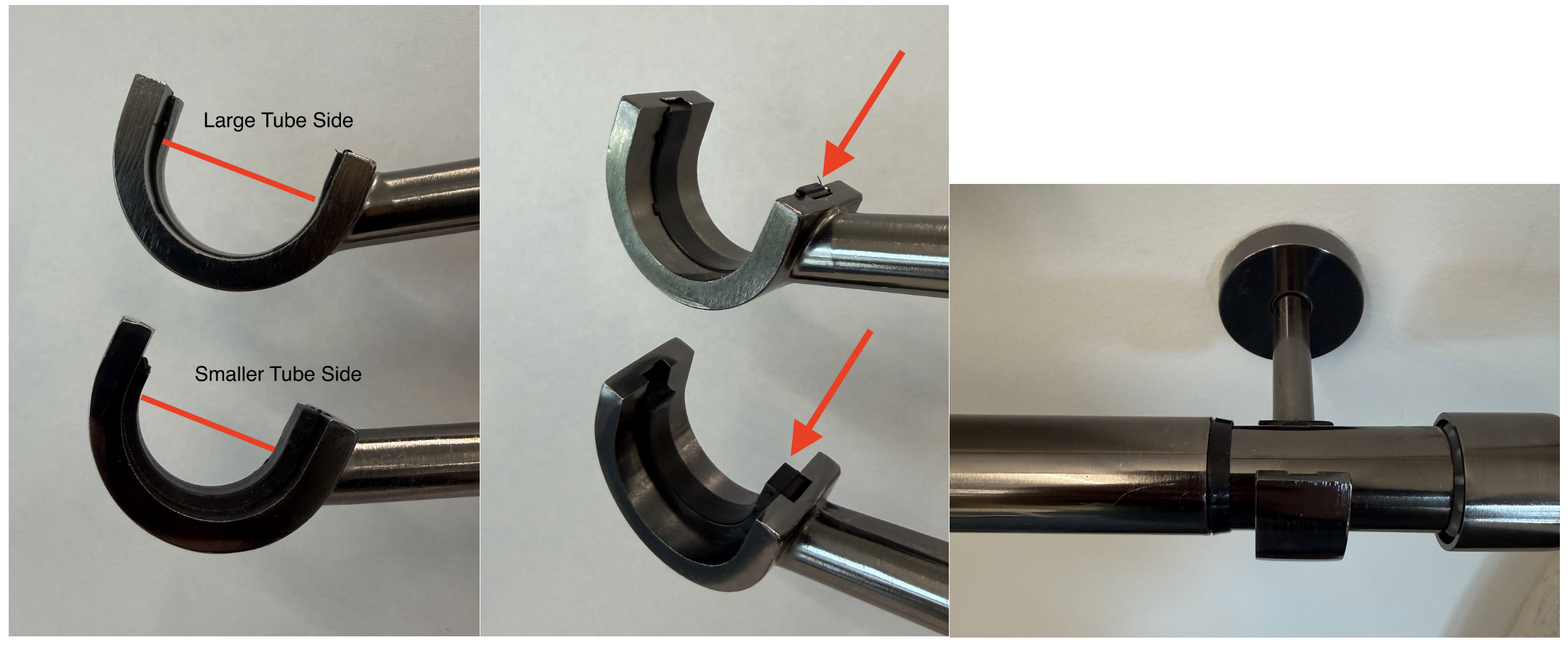 ABS Drapery Rods telescope, meaning the rod consists of two hollow tubes, the smaller tube slides into the larger tube to adjust width.
