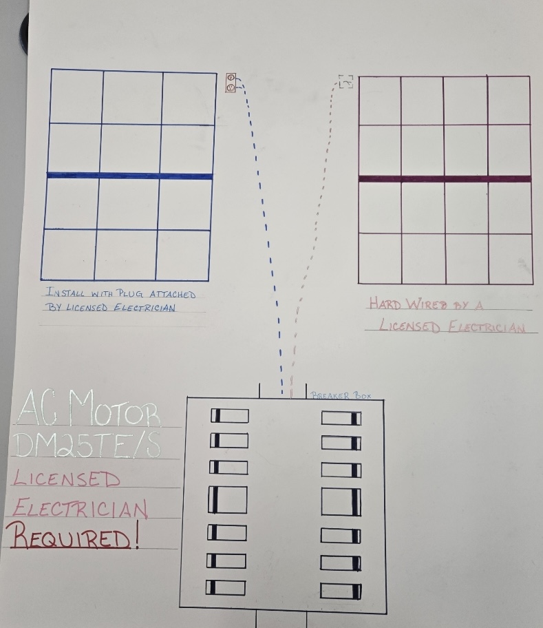 The AC motor is a high-voltage motor that can be either hard-wired into a home's electrical system, or a plug may be added to the end of the pigtail to plug into an outlet. Either of these must be done by a licensed electrician.