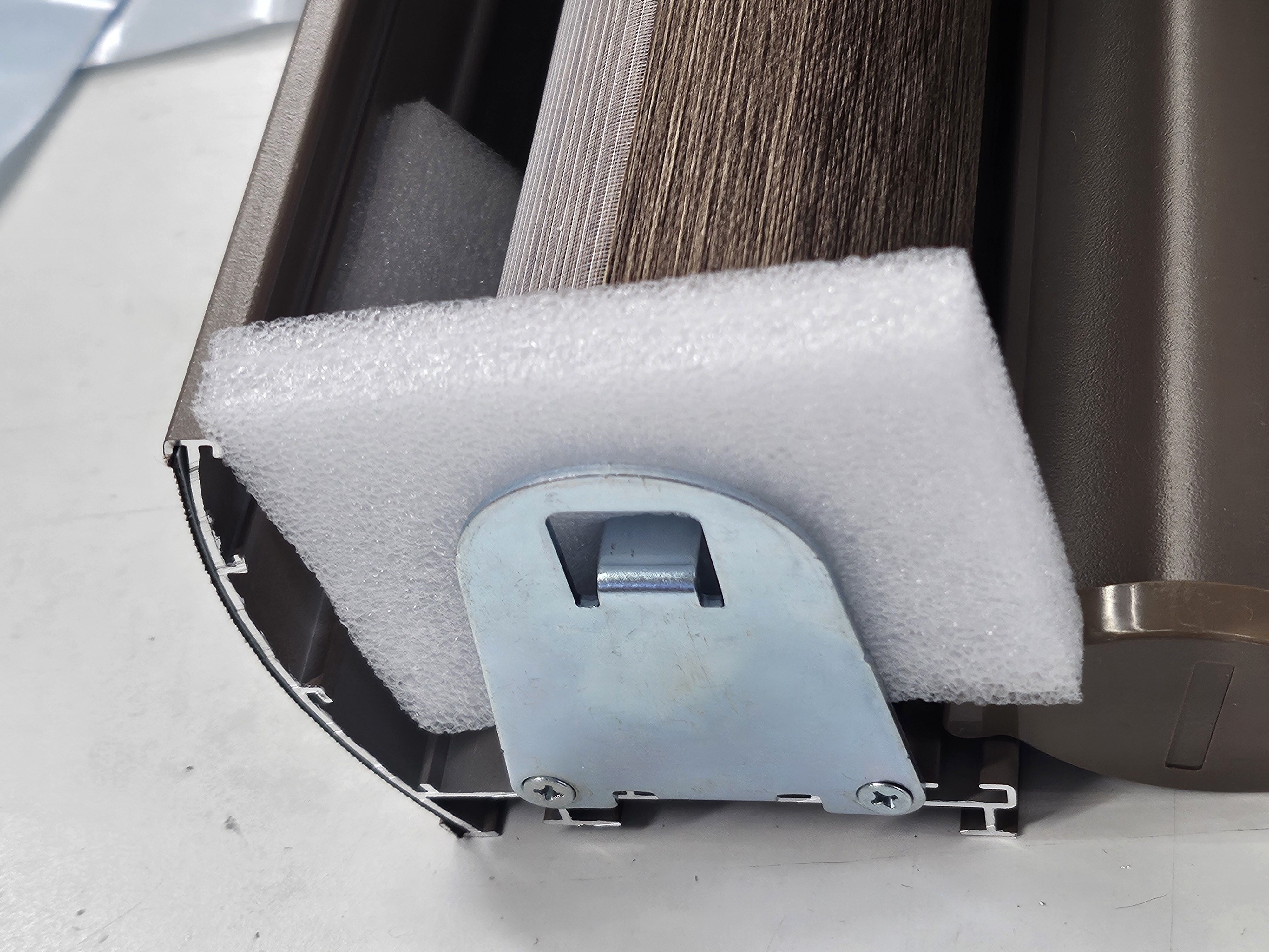 If shades are ordered as motor ready, the factory will place foam padding between the control end of the tube and the cassette to prevent movement and damage during transit.  Photo below:
