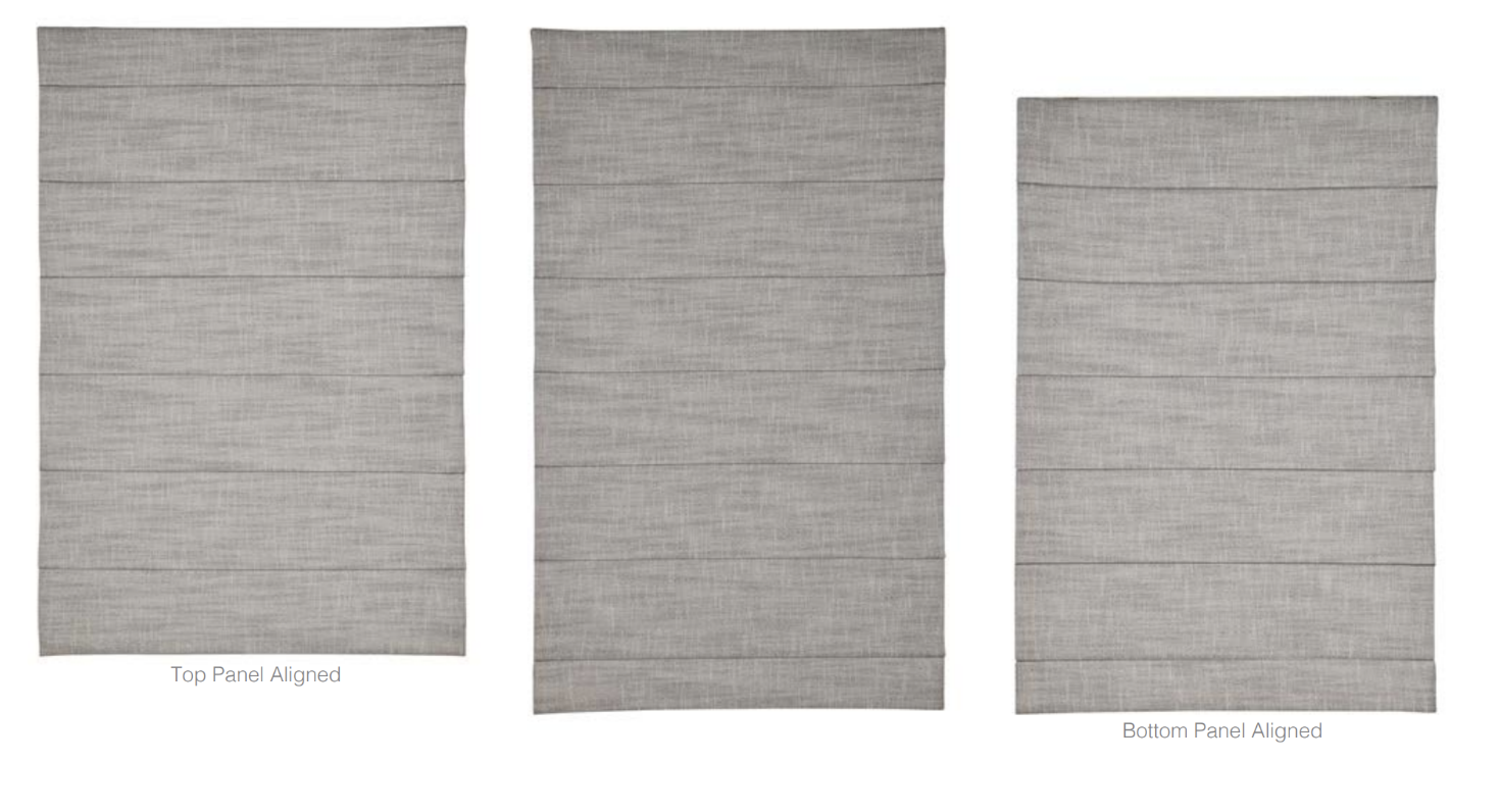 - If ordering multiple shades to be installed side-by-side and panel alignment is desired, all shades must be ordered at the exact same height to ensure consistent folds. Shades of different heights will have different fold spacing and will not align with each other.