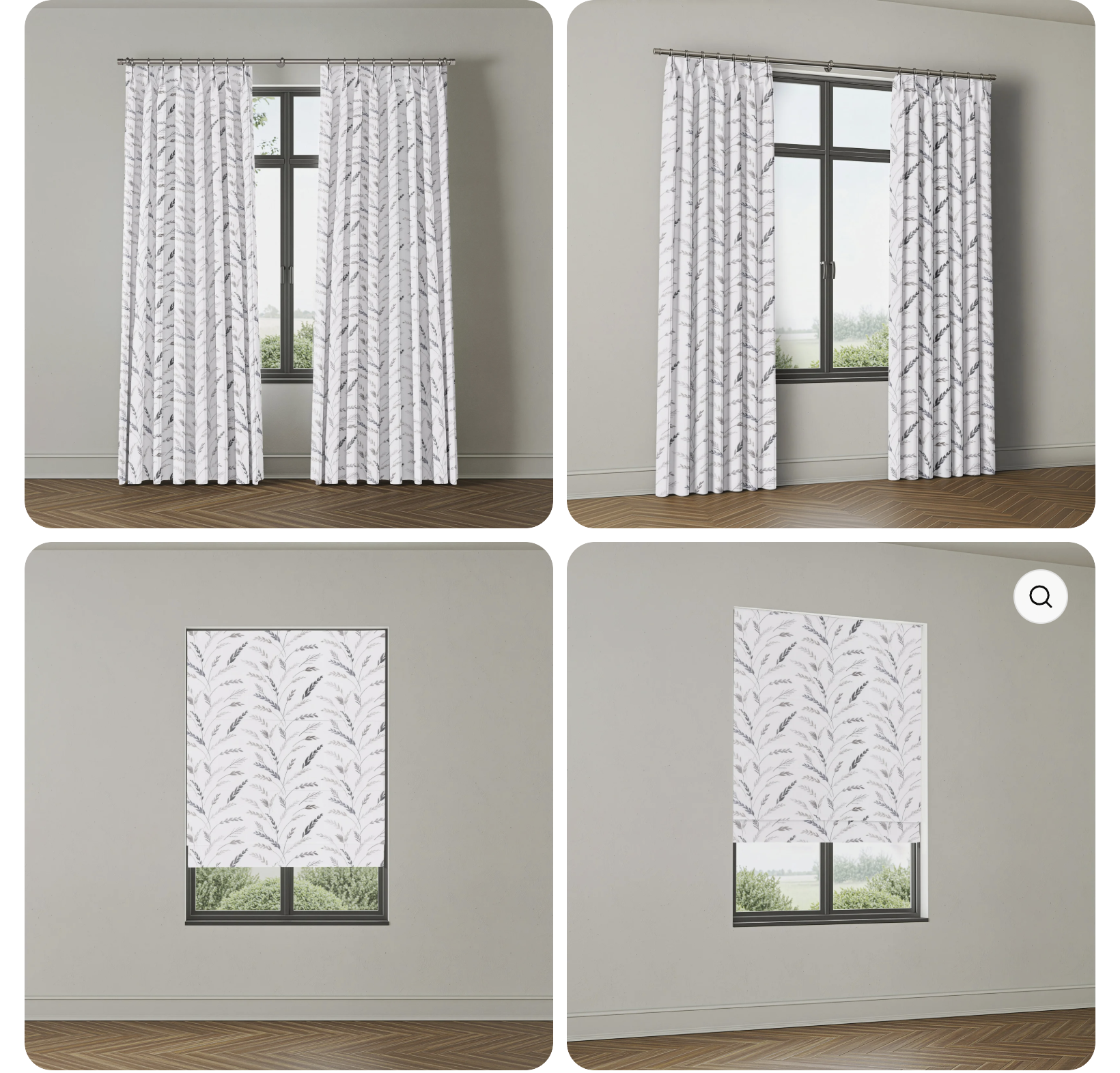 On our websites, we have images of the fabrics that are available to order. Some of our collections include examples, or renderings, of what the fabric would look like as a Roman shade or as Drapery.