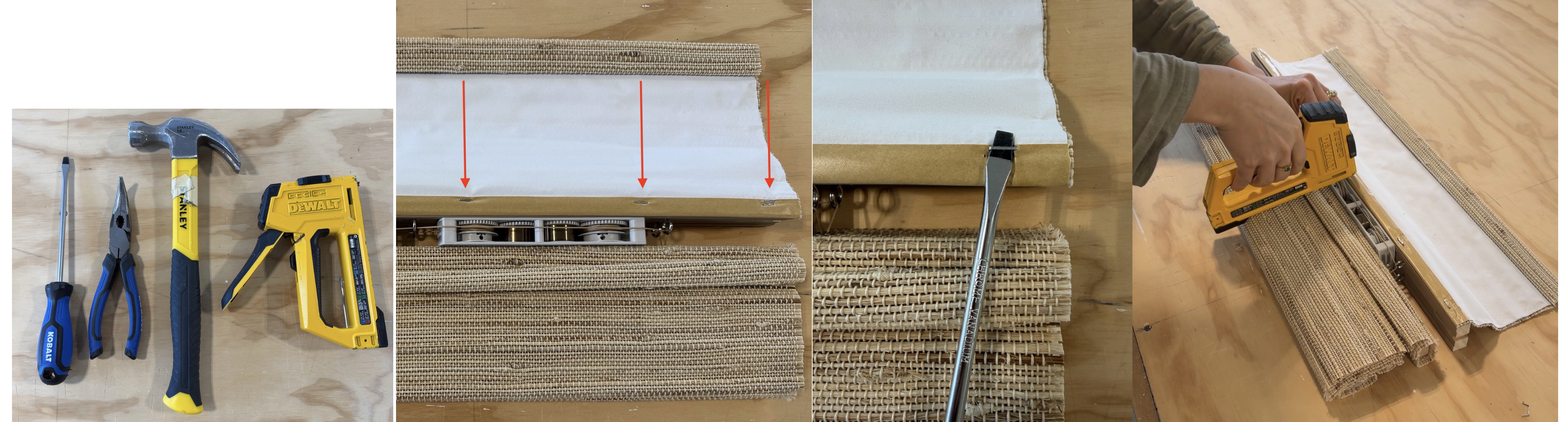 Required Tools: flat head screw driver, pliers, hammer, hand held staple gun